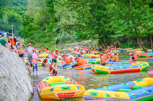 炎熱夏季,戶外漂流是消暑首選。乘著皮筏順流而下,穿梭在蜿蜒流動(dòng)的河中,陽光普照,四面青山環(huán)繞,漂流其間,迎面而來的涼風(fēng)與水珠沖刷掉了夏日的酷熱。刺激的漂流也似乎喚起了大家尋樂的童心,河道中彼此你追我趕,一旦相撞少不了要一場(chǎng)戲水激戰(zhàn)。飛濺的河水浸透了衣服,大家卻沉浸在快樂里。